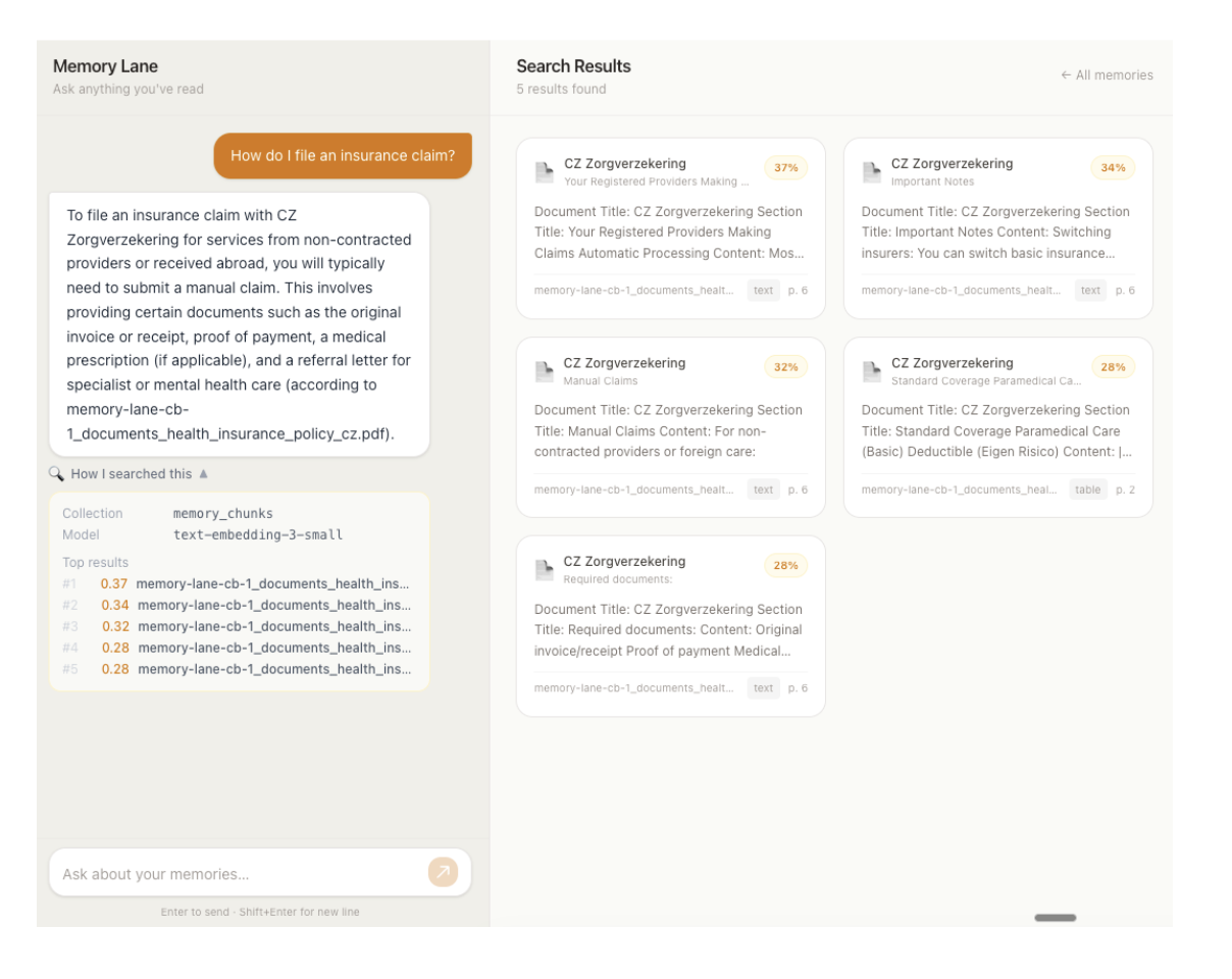 If you are building an AI-powered search or retrieval system, Memory Lane demonstrates that the hard parts of streaming responses, accurate semantic retrieval, and production-grade infrastructure do not require exotic infrastructure. They require clear architecture.