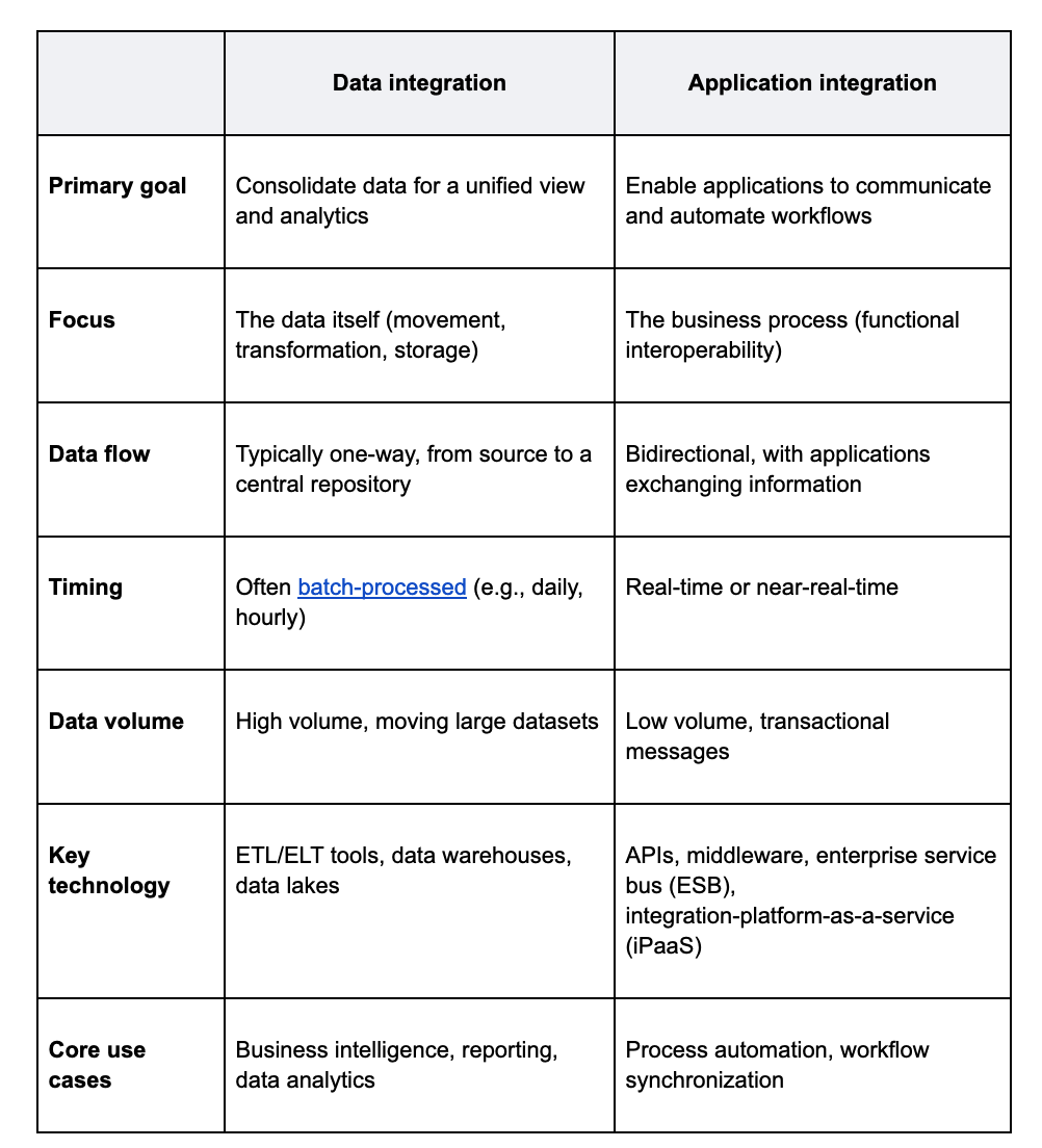 Diferenças entre integração de dados e integração de aplicativos