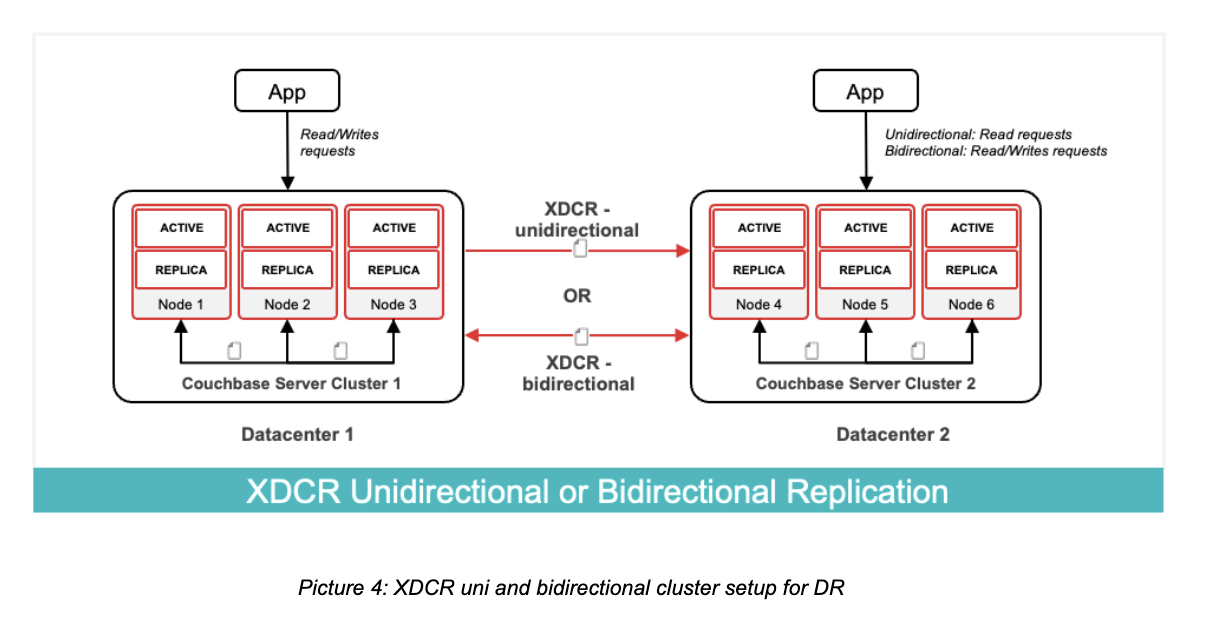- Cross-Region Resilience With Cross Data Center Replication (XDCR): XDCR is Couchbase’s high performance memory-to-memory replication technology that enables replication (uni or bidirectional) of data across different clusters in different geographies. XDCR is what extends your application’s resilience far beyond a single cloud region.